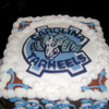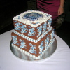 Marble cake with chocolate cream cheese butter cream icing. UNC logo is made out of fondant and face of ram is hand painted along with the markings on the ram's horns. The groom just loved the cake.