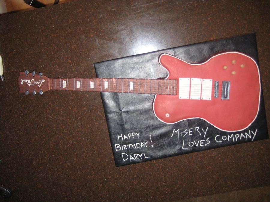 Cake made to resemble the clients Les Paul guitar. It was a surprise and displayed while the band finished up their set. I was unhappy with it, but everyone in the place was coming up asking for cards and taking pictures, so I guess I can't complain!