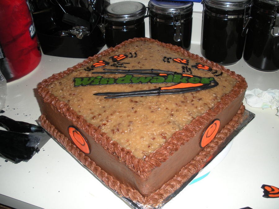 German chocolate cake with buttercream icing, Color flow logo and sporting clays