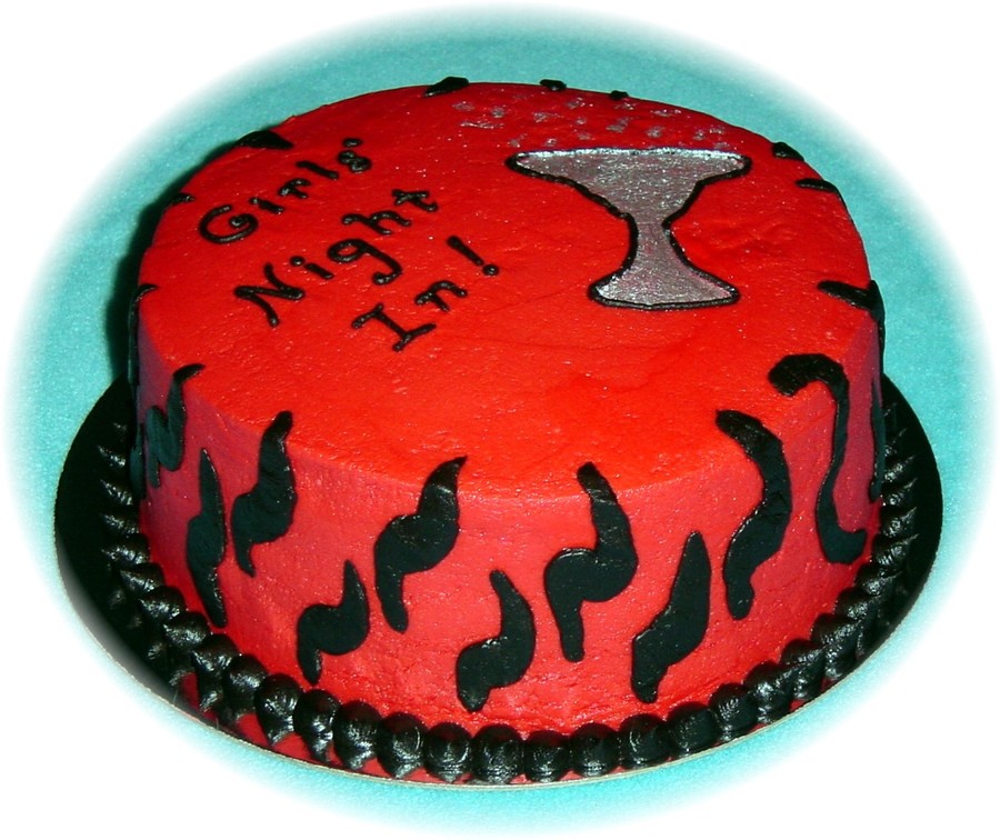 Cake made for a bachelorette party, where the girls were partying at home, rather than going out. Lemon cake with raspberry filling. All buttercream. I added lustre dust to the glass to give it the silver colour, and added a few "bubbles" over the top. The girls loved it.