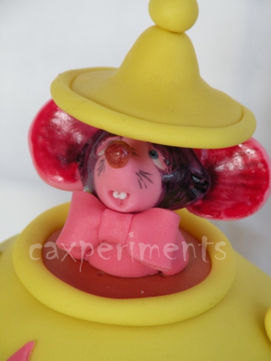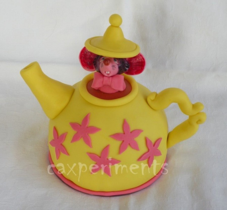 Mini cake with the little dormouse from Alice in ........ Covered in fondant with sugarpaste decoration.