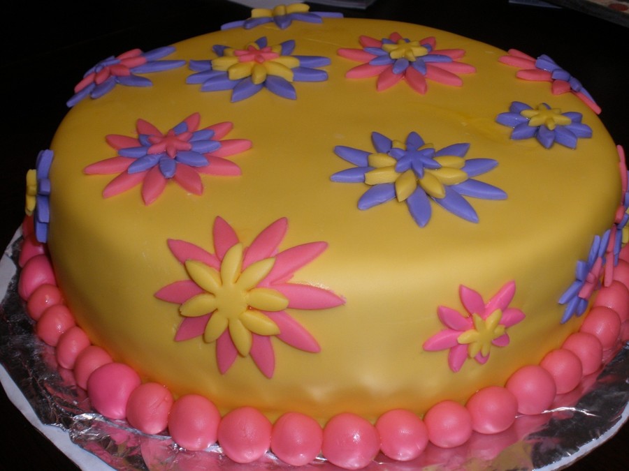 This is my first fondant cake. I thought it came out pretty good.