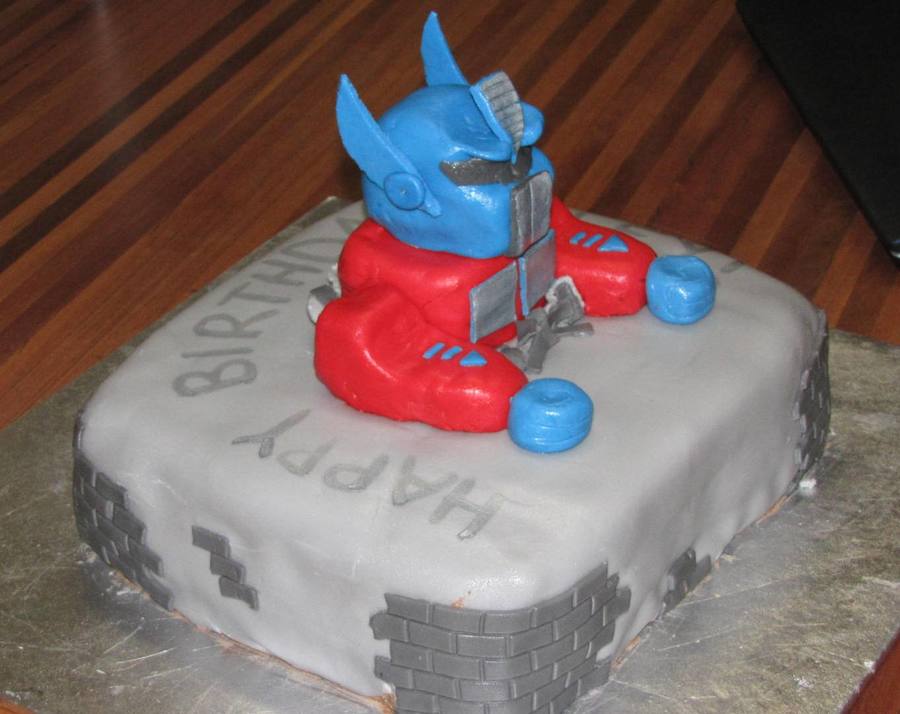 My son asked for a Optimus Prime cake for his 6th Birthday. After looking at other OP cakes on here I got a few ideas. The cake is vanilla with chocolate buttercream, over the top is MMF. The entire Optimus Prime is MMF, I couldn't handle the thought of carving him out as a cake, so I sculptured instead, much easier.