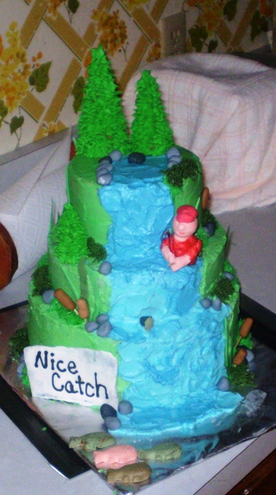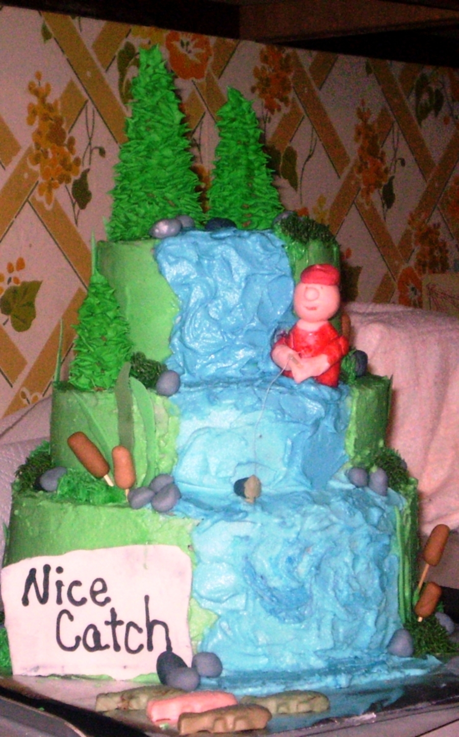 This was for my sister's wedding. We served it at the rehersal dinner, a grooms cake. He loves fishing. It was a lot of fun I loved the trees. Who knoew they could be so easy!