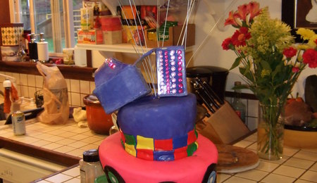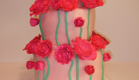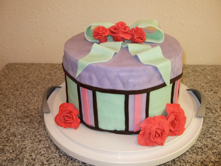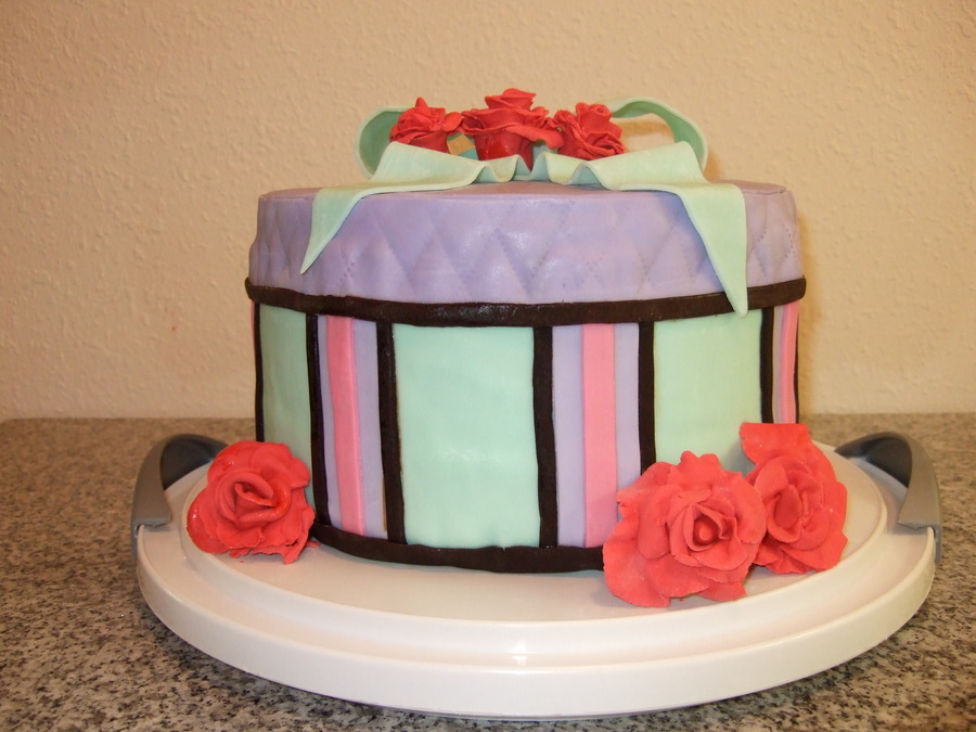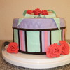 My 3rd fondant cake. I liked the colors together but I'm still learning how to apply and work with fondant. I was happy about how the roses came out. These are my first ever attempt at gumpaste flowers. It took me about 2 hours to make 6 roses! LOL!