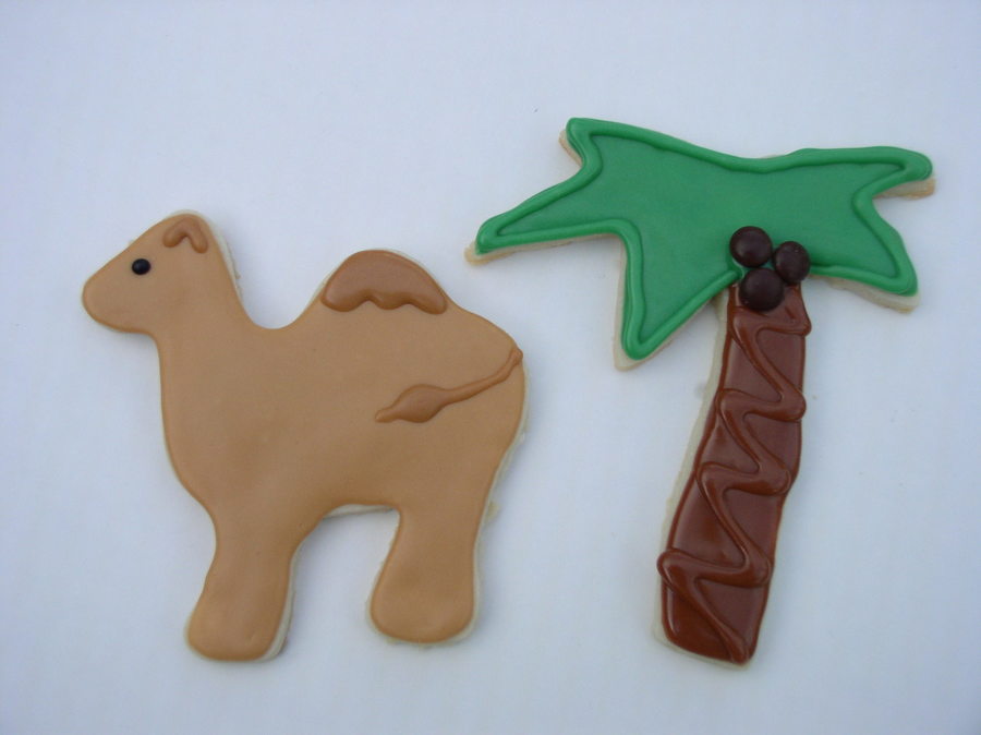 Sugar cookies with glace done for Shriner's BBQ. Coconuts are mini m&ms. Camels inspired by bakinccc's!