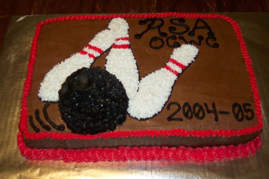 This was a bowling cake that I did for the league that I bowl with earlier this year. The bowling ball was made with the Wilton mini ball pan and is 3D off the cake.