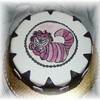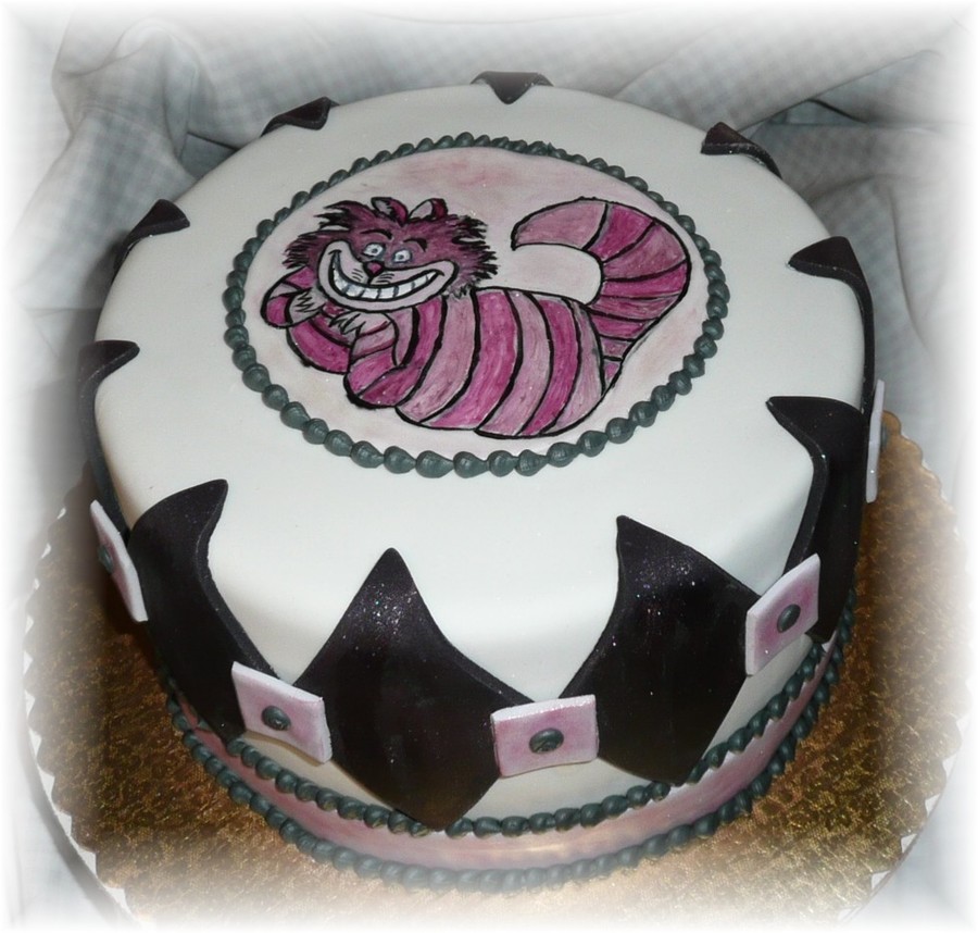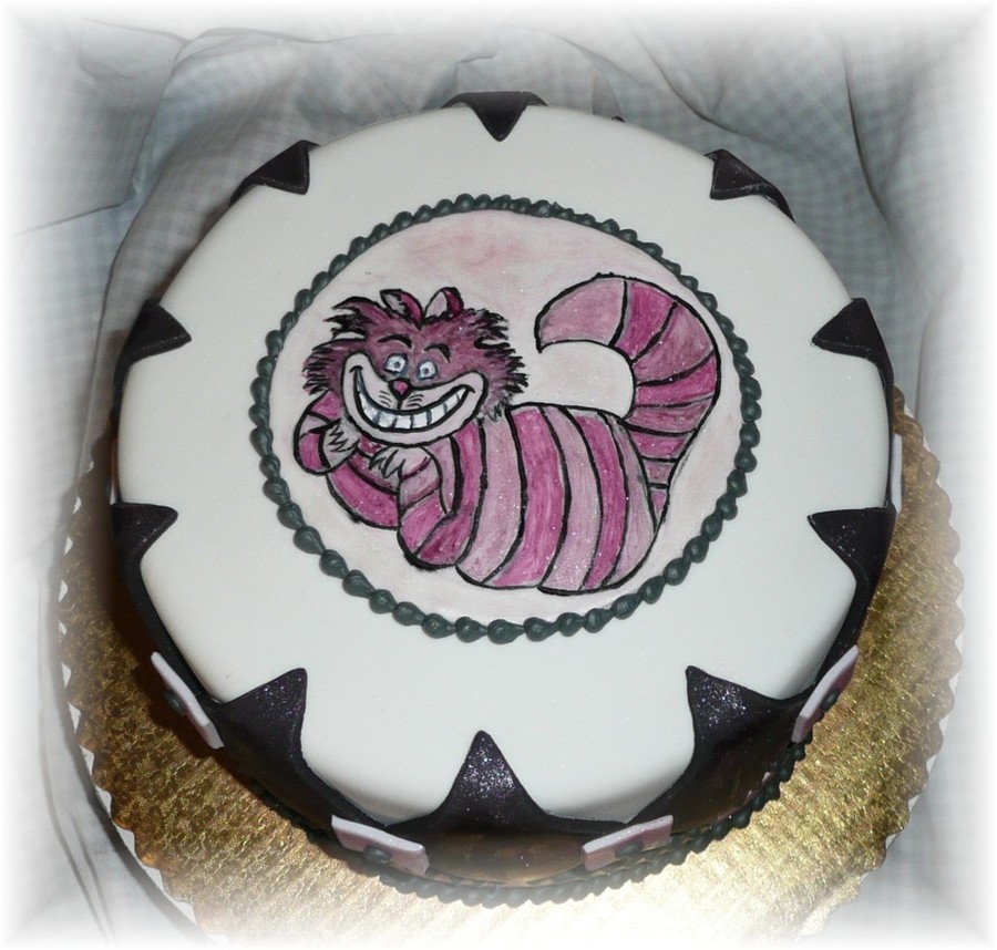 Made for my friends birthday, its fondant and RI border with hand-painted cat on top.