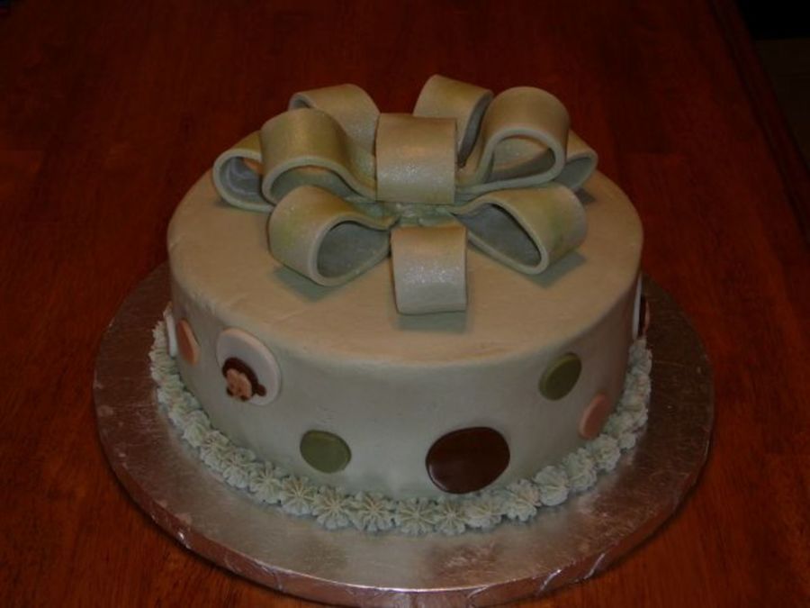 Buttercream cake for babyshower. This was designed to match the baby's room theme. There are little monkeys poking their heads out of a few dots.