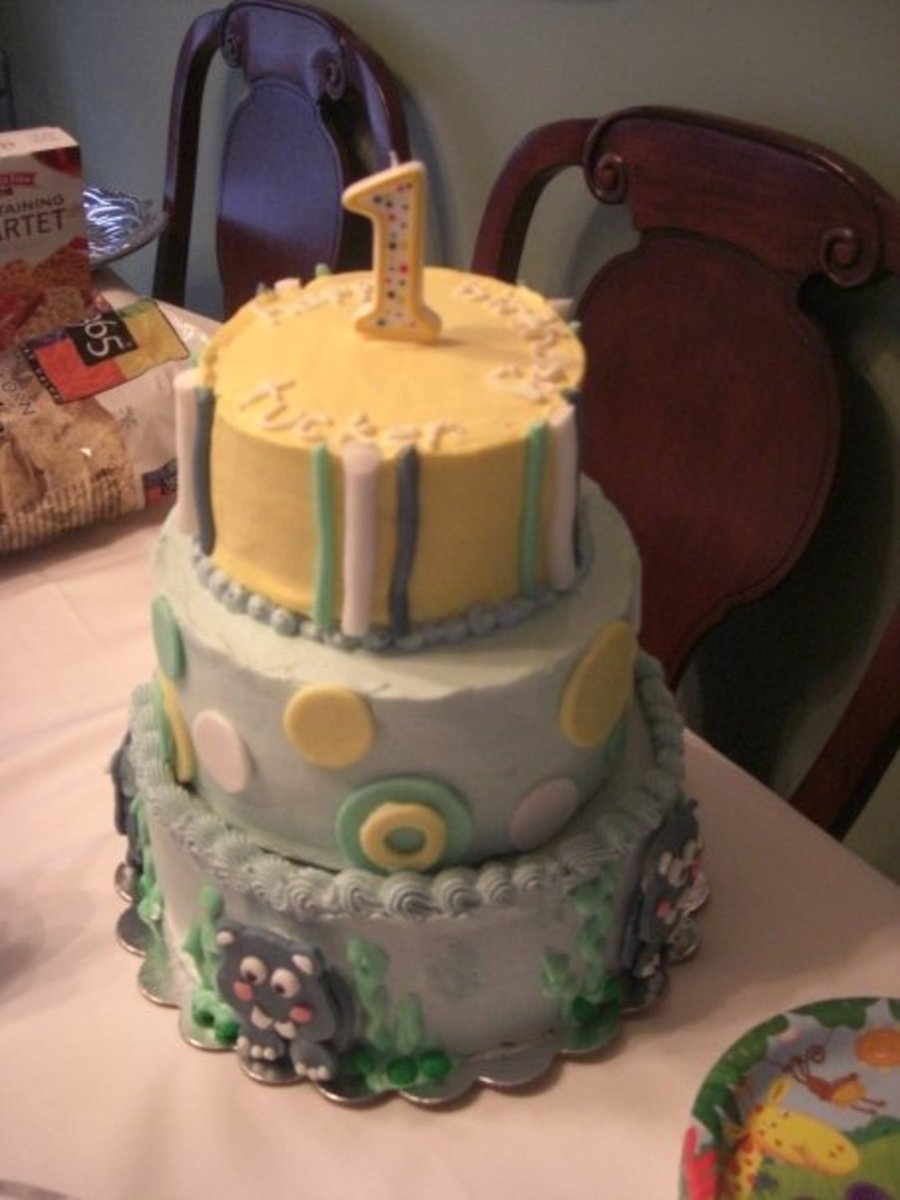 Butter cake with pastry cream and buttercream with fondant accents. Those are hippos on the bottom in case you can't tell!
