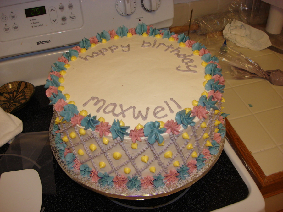 The client wanted the cake to match the birthday card invitations and the card was very abstract with colors everywhere. I'm considering it a miracle I got it to look decent because I was scared silly!
