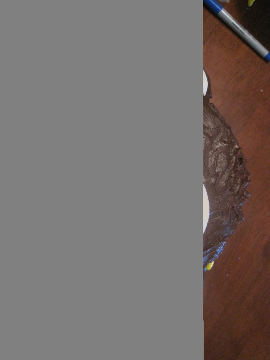 This was my nephew's 1st Birthday cake. We had a mod monkey theme. The ears are halves of cupcakes and the face is fondant.
