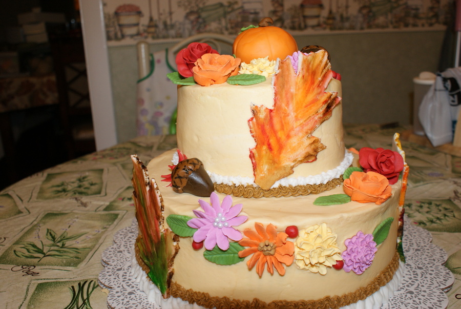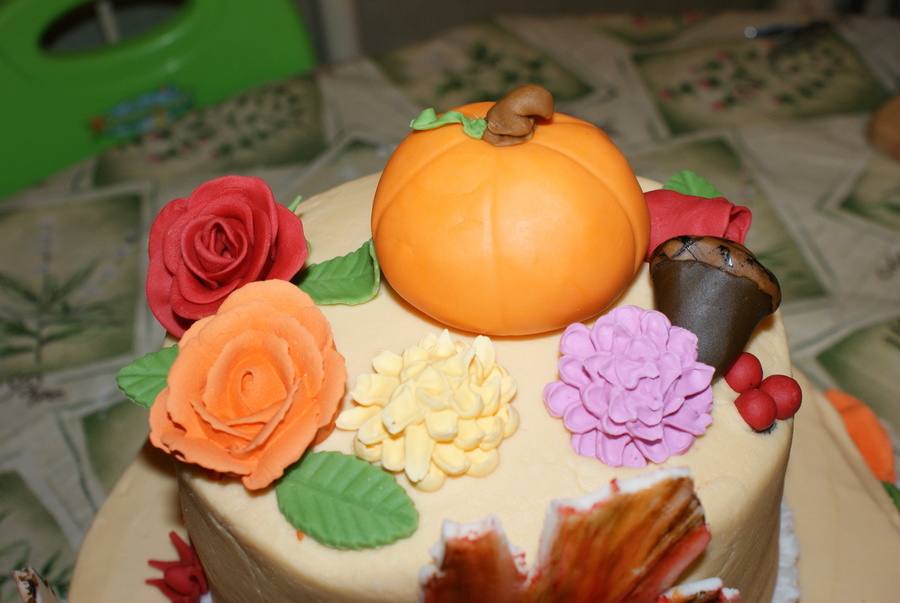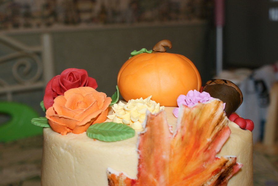 I thought outside the box for my final cake. Top tier WASC cake with strawberry preserves. French Vailla and Chocolate Chip cake layered with caramel frosting. Iced with buttercream. Fondant and RI decoactions. This cake caused me so many problems, I'm surprised it didn't turn out that bad.