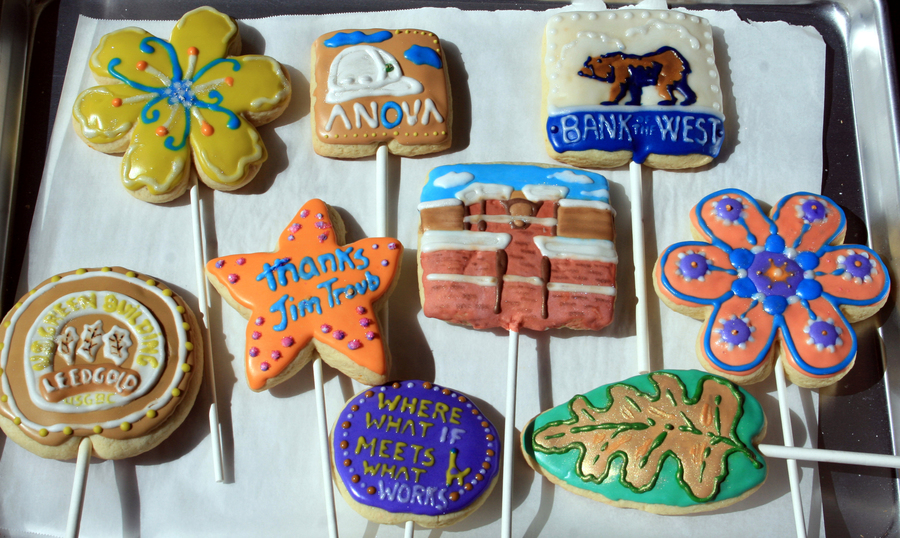 Limoncello sugar cookies made for an architect. Notice bricks on the building.