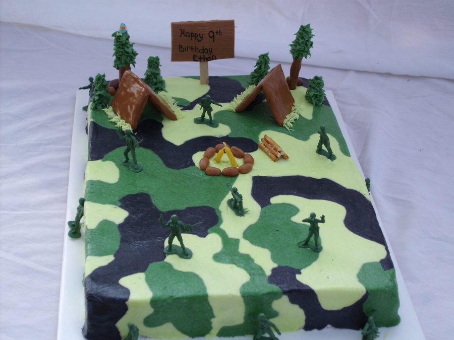 Camo cake was white cake, buttercream icing with fondant details.TFL