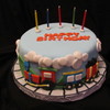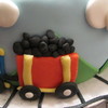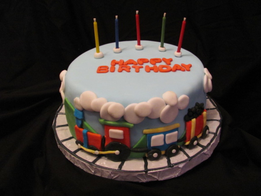 This is an 8 inch cake covered in fondant with fondant accent's. I had to recover this cake in fondant because when I added my trains to the side I had cut them out too large and when I took them off it tore up the fondant. I guess it pays to measure accurate.