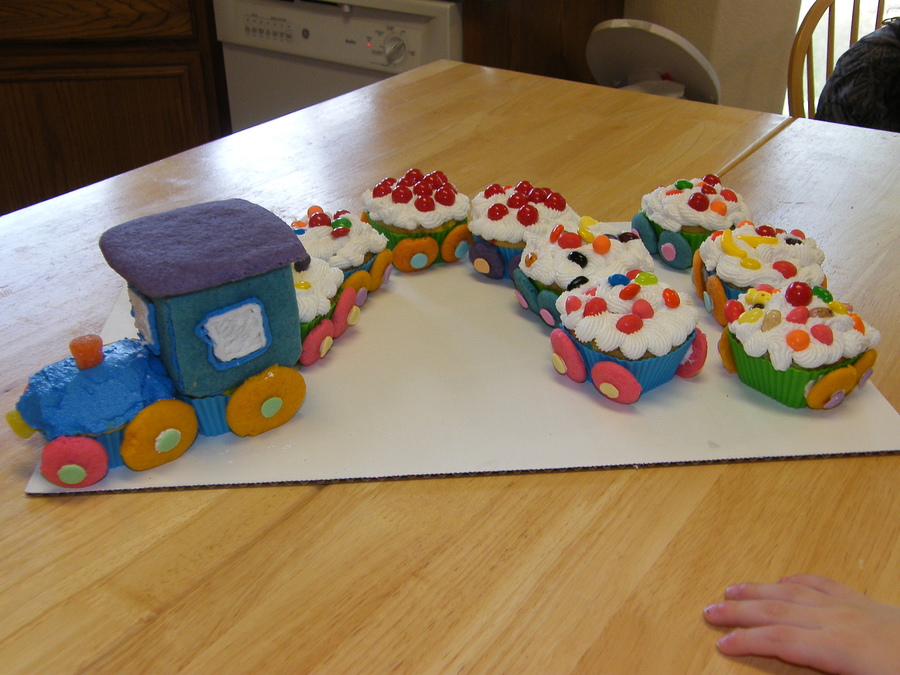 Cupcake train done from design in the Wilton Cupcake book.