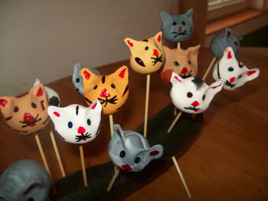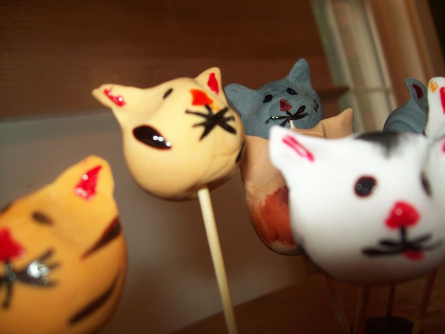 Kitty heads made from gumpaste for cupcake toppers