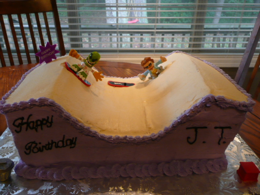 Thanks to the help of many of my new friends on CC, this cake was made for a coworker's sons's 15th b-day. Most of the half pipes I have seen were of fondant; however, my friend wanted the cake in BC. So this was my FIRST real challenge. I have only taken two courses with Wilton, so I was nervous. I hope you like it.