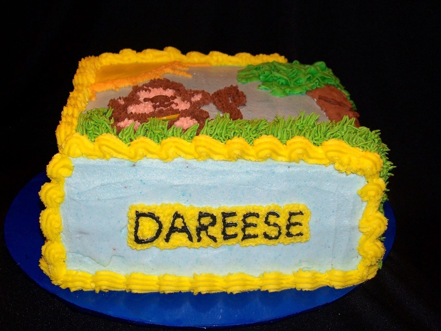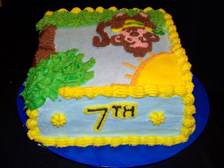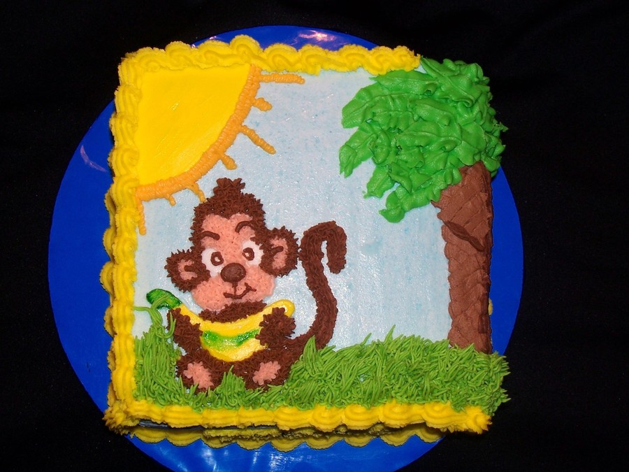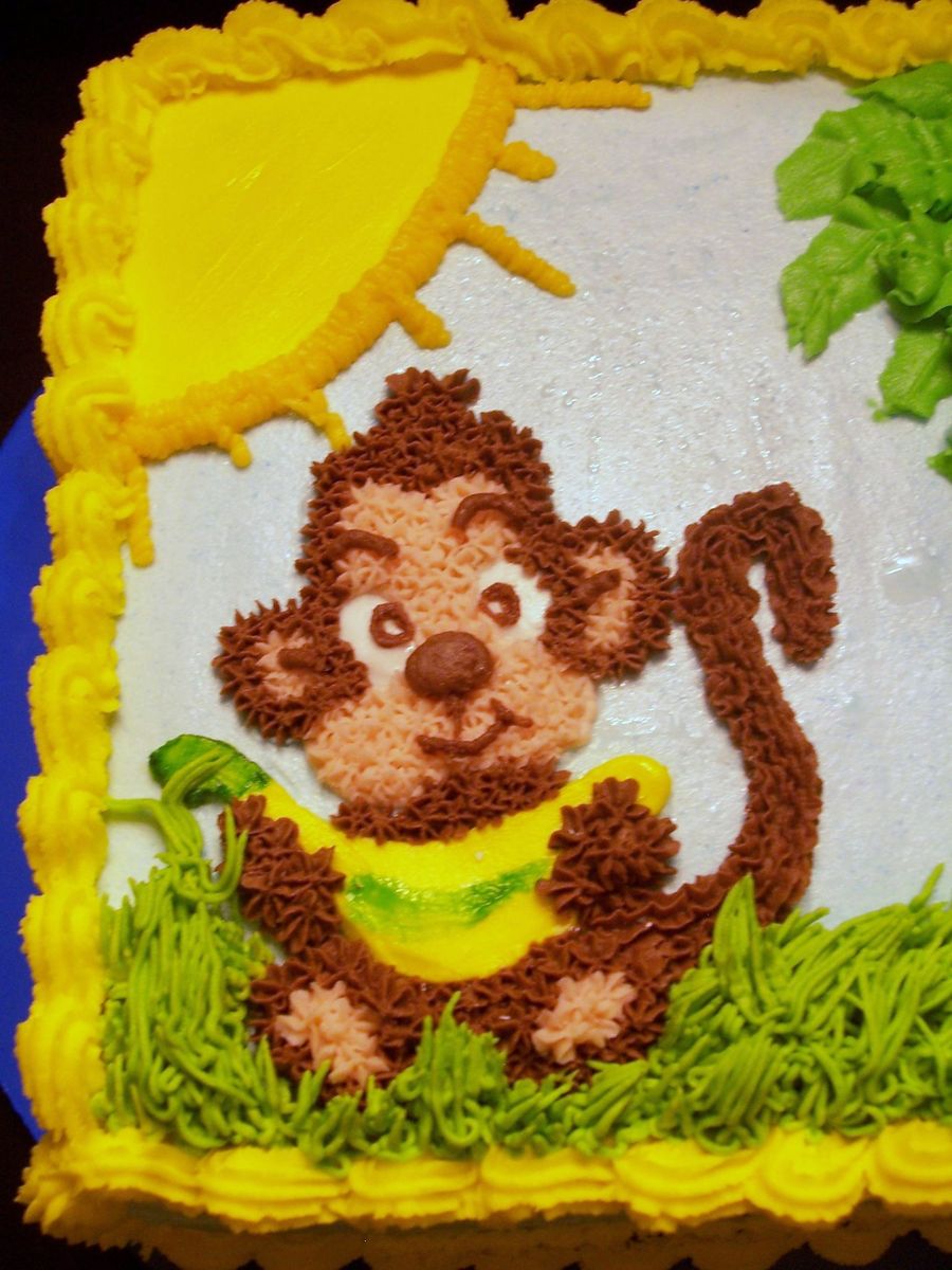 Made for a colleague's nephew, "Little Monkey." Layers of Vanilla and Chocolate cakes covered with buttercream.