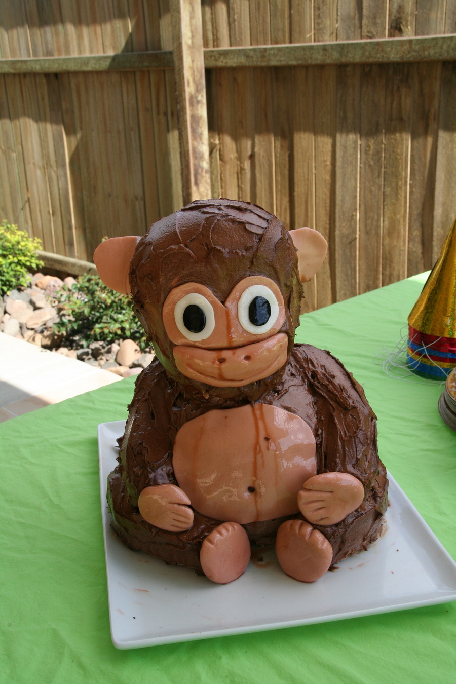 Monkey made out of rice kripie treats, This was the first time I have ever attempted a 3D cake and the first time using rice kripie treats.