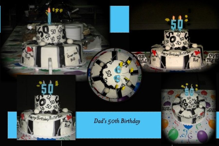 This was for my dad's 50th birthday. The bottom is a 12in cream cheese lovers cake, and the top is a 6in. Orange Dreamsicle cake. All covered in
