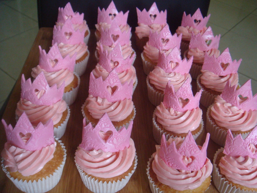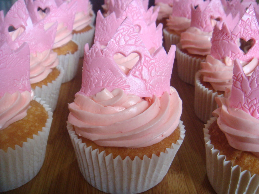 Tiara cupcakes for a princess theme birthday for a little girl. vanilla cupcakes with swiss buttercream topped with handmade sugarpaste tiaras.