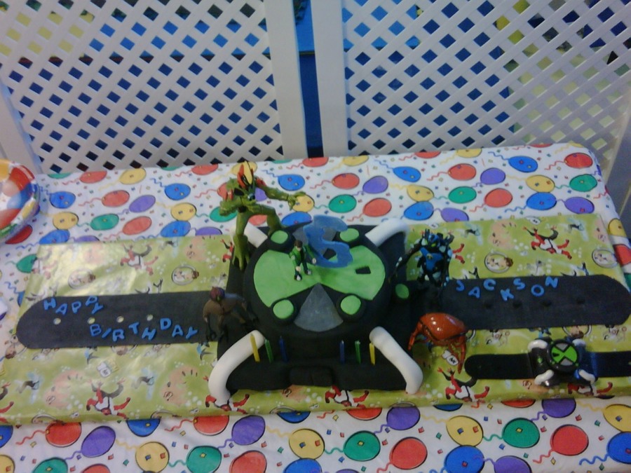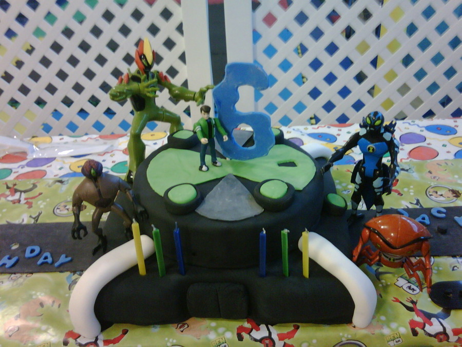 My Granddarlin' , Jackson's 6th birthday. He wanted a Ben 10 cake to put his toys on. I wanted to do the figures in gumpaste, but he wanted his toys on it!