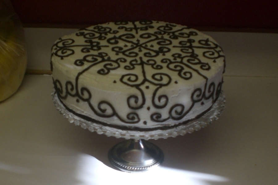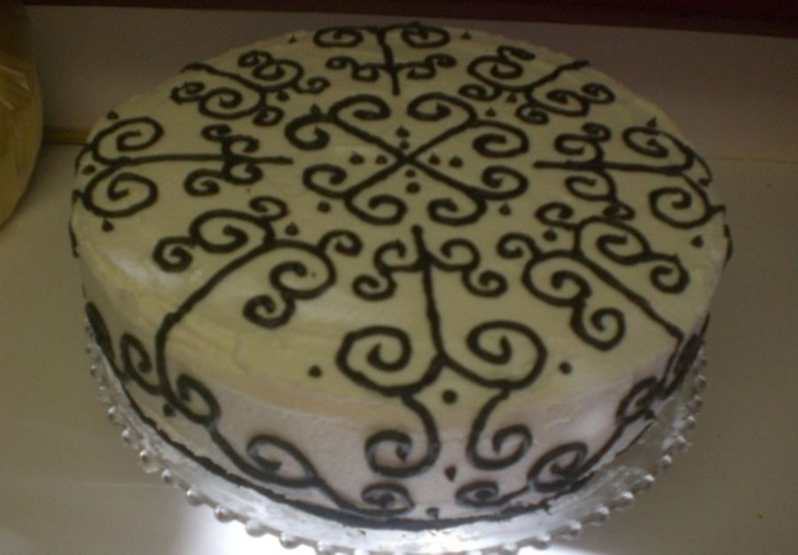I wanted to practice some scroll work with buttercream, so I made this practice cake. It was vanilla cake. I sent it to work my husband at the sheriff's office. They had a heyday with it.