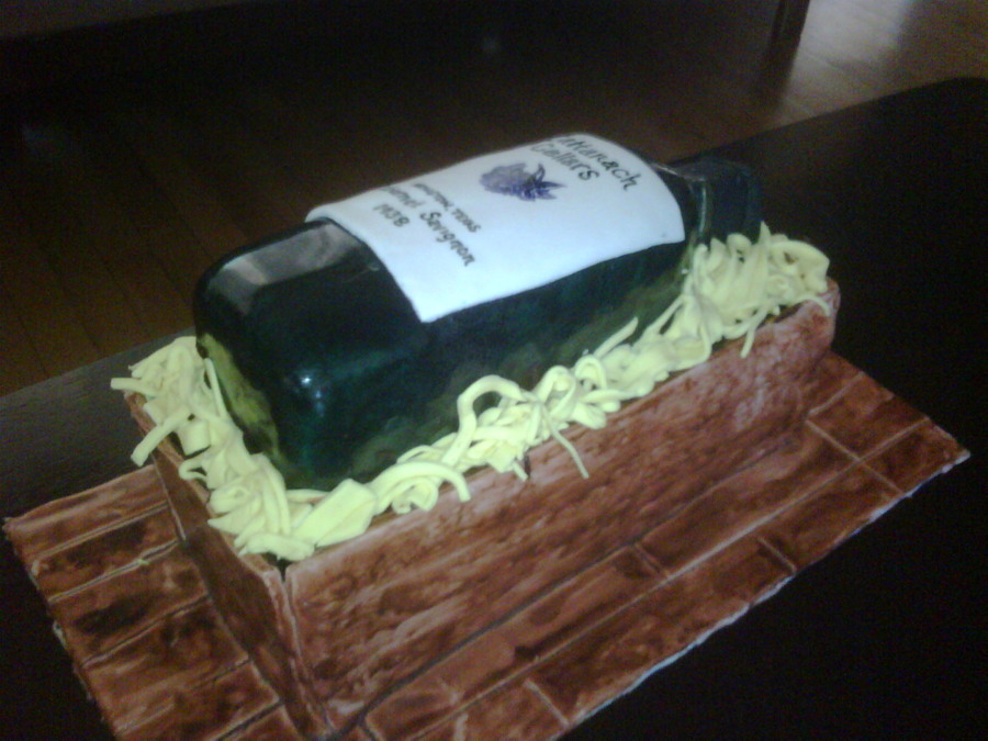 First try at wood grain and/or wine. Both could be better, but not too terrible for a first try. Of course, if anyone tried to polish off a bottle that large...