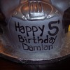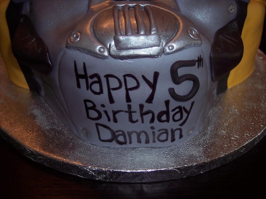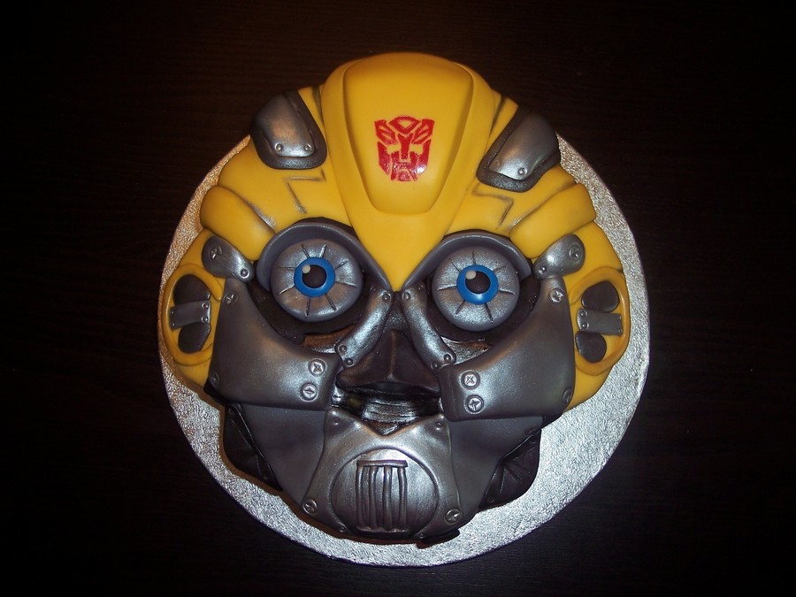 I started with a 10" round Vanilla pound cake, filled with buttercream and carved it out. Everything is fondant, with lustre dust and painted metalic silver, as well as hand painted transformers symbol with red food colouring.