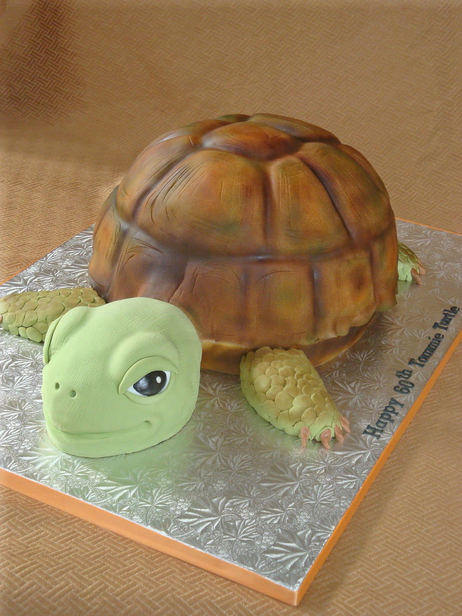 Giant turtle cake for a 60th birthday. My first time airbrushing...so please be kind LOL!When I was almost finished I dripped airbrush color all over his face. i couldnt get it off so I had to redo it. My kids were away, so I was allowed to use some naughty language.