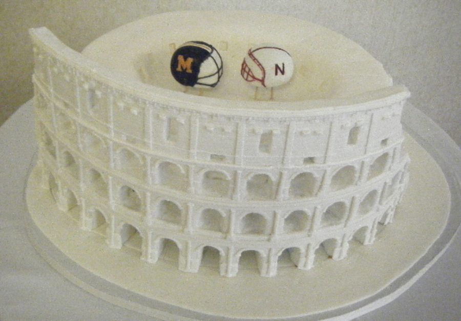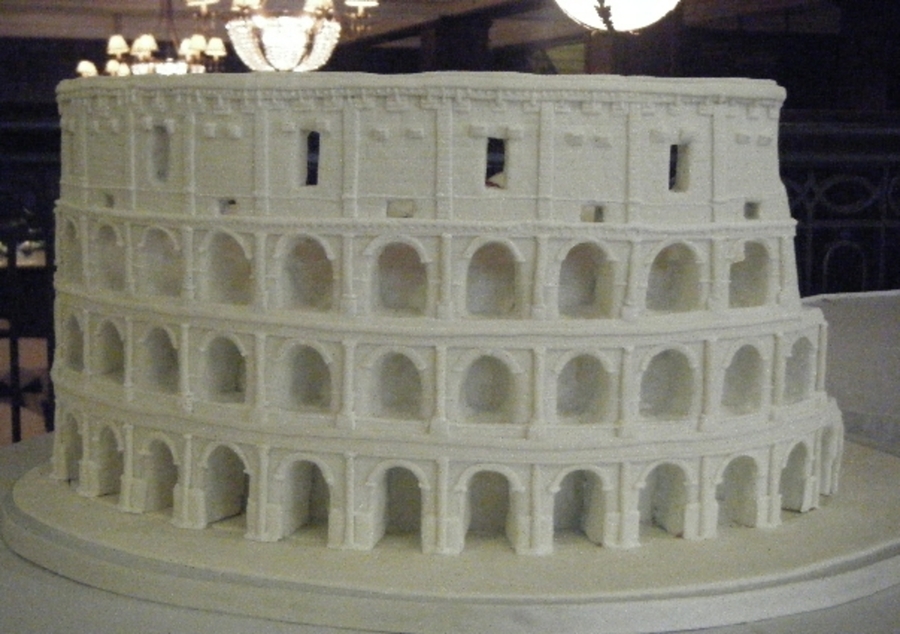 Roman colloseum cake. all cake and fondant was requested white