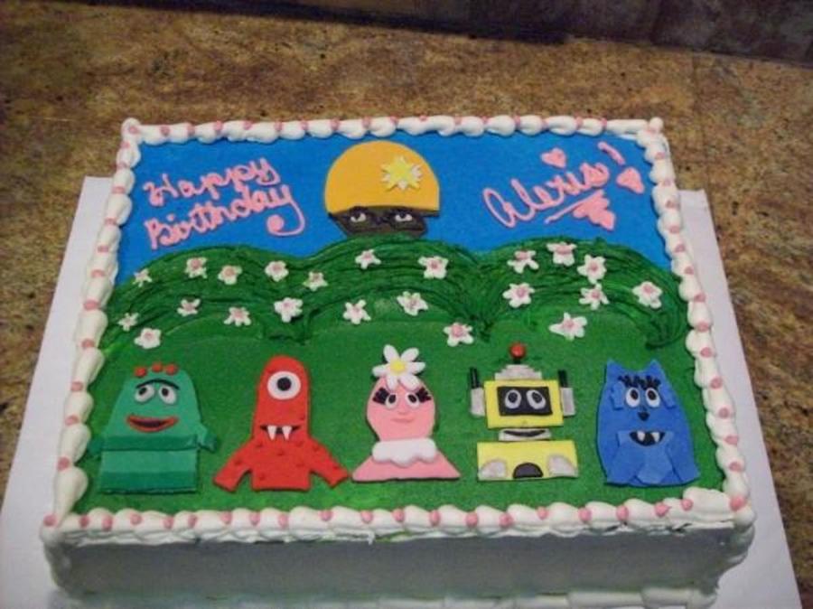 Fondant yo gabba gabba characters. Buttercream Icing, with vanilla Cake