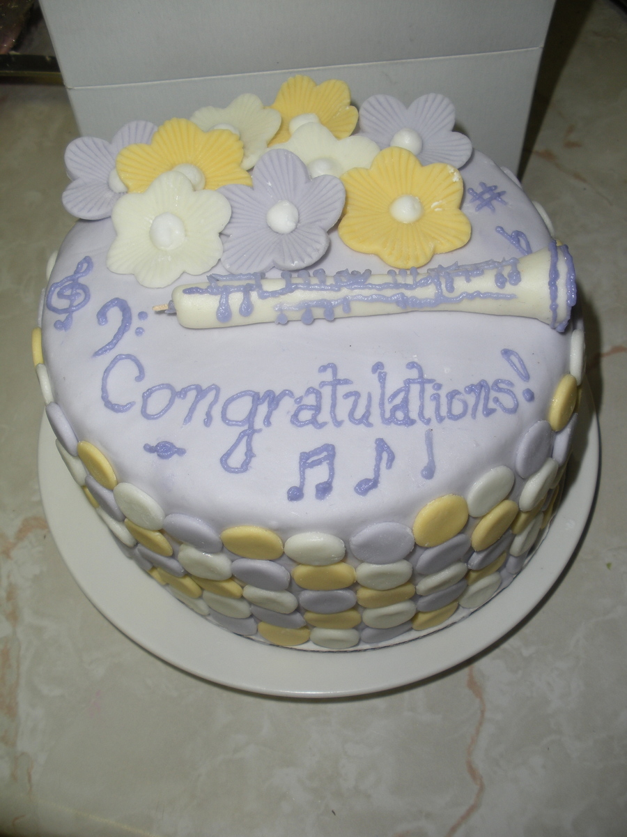 My co-worker's daughter made her school's Jazz Band as their only oboe player. This is a mini 6" cake vanilla and chocolate filled with cannoli filling. fondant and RI accents - Oboe is fondant