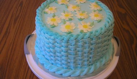 Heath bar cake, 1 layer chocolate cake, one layer butterscotch cake, with Heath bits mixed into buttercream as filling. Covered in marshmallow fondant.