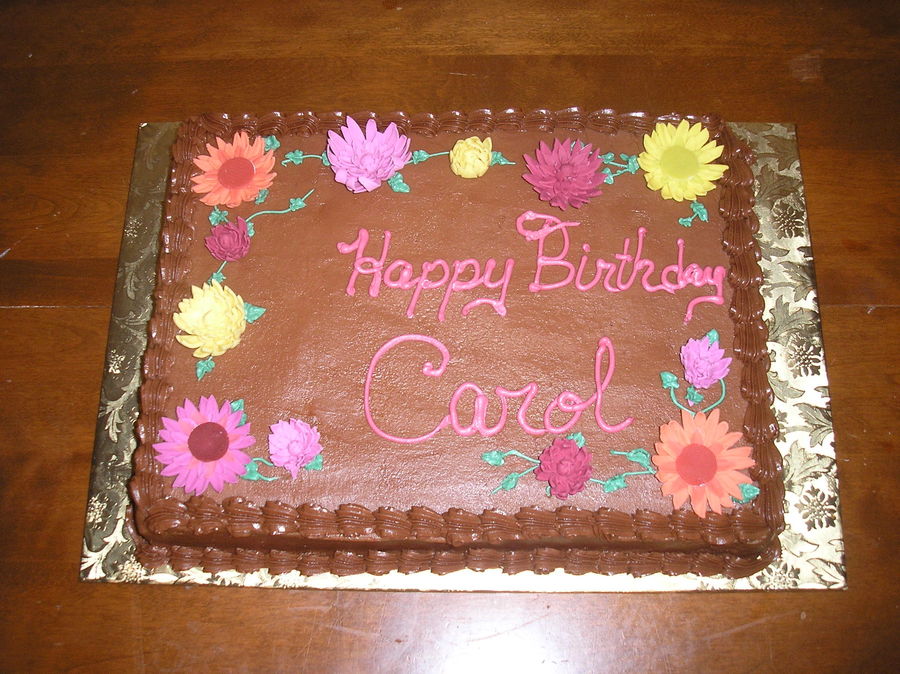 50/50 fondant/gumpaste flowers, on French vanilla cake with chocolate buttercream.