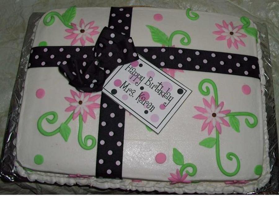 Client saw one like this on CC and wanted one like it. Buttercream iced, fondant flowers and fake ribbon and bow. TFL