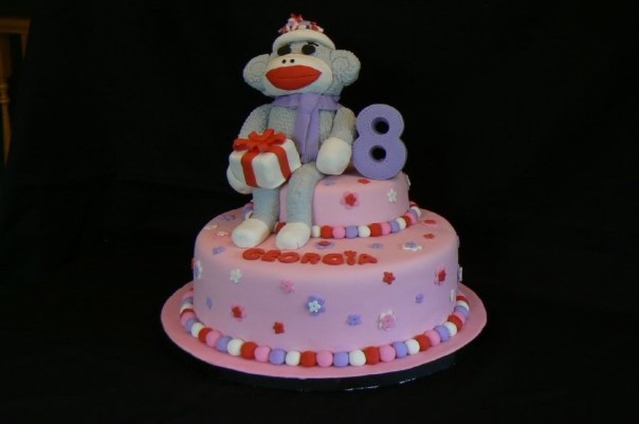 Cake is vanilla with vanilla buttercream. Sock monkey is rkt covered in fondant.