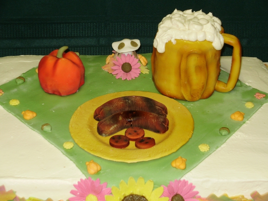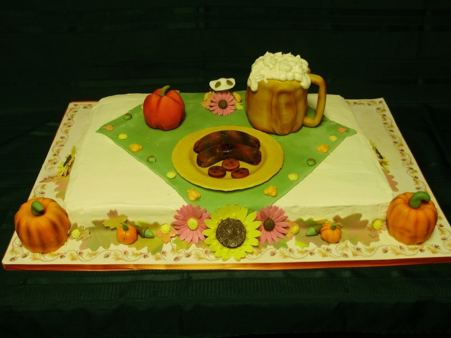 This cake was for an October Fest celebration. It was 4 different kinds of cake, and all was eatable. Working on learning to airbrush...not the best, but at least I'm not terrified of the thing anymore...grin...
