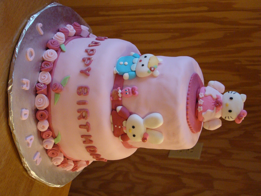 Customer emailed a photo of this cake. White cake colored pink on bottom, oreo cake colored pink on top. She likes pink. =) Covered with fondant, fondant accents. Original design is by dragonflydoces (check her out - she is AWESOME)!!!