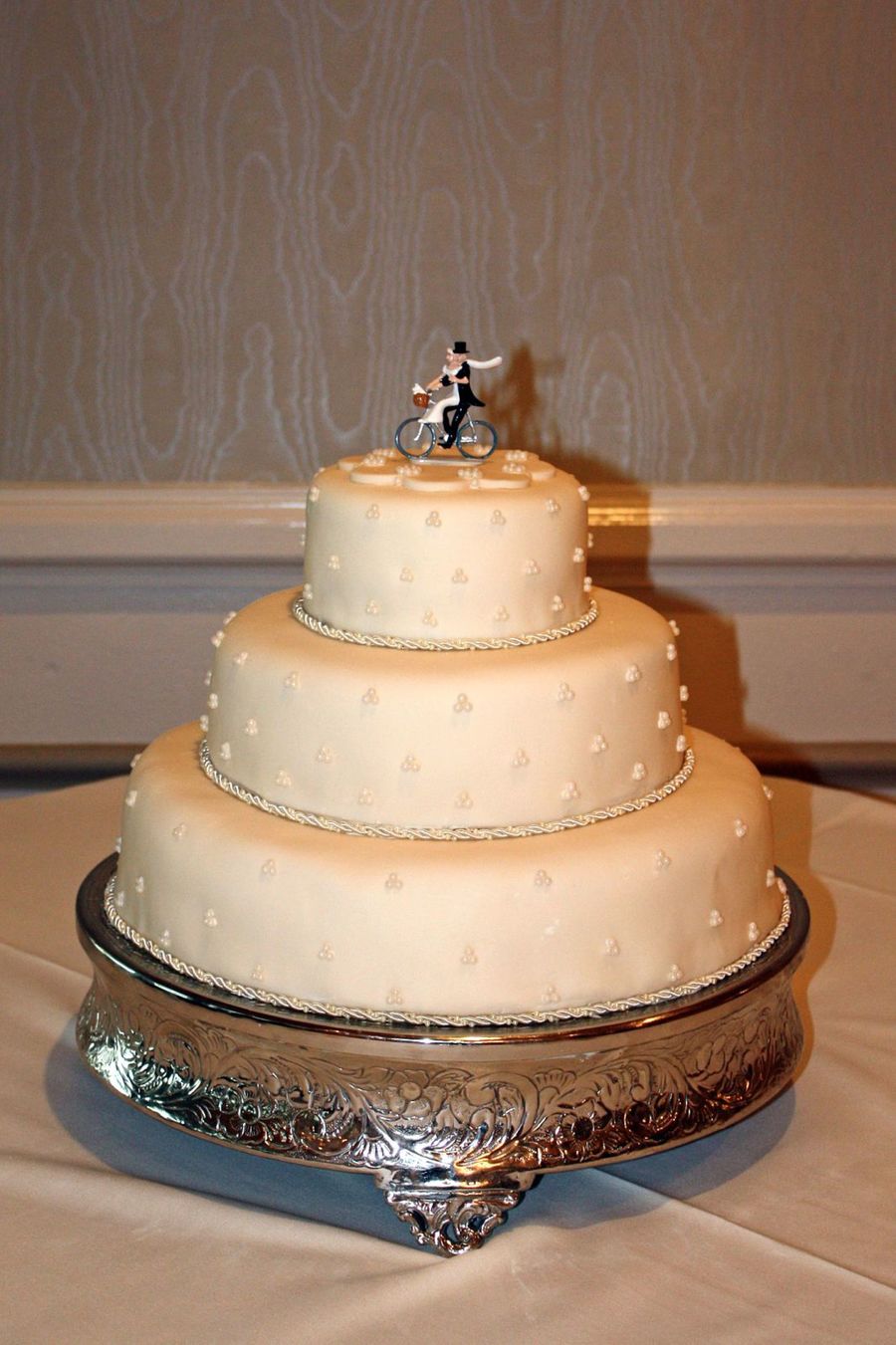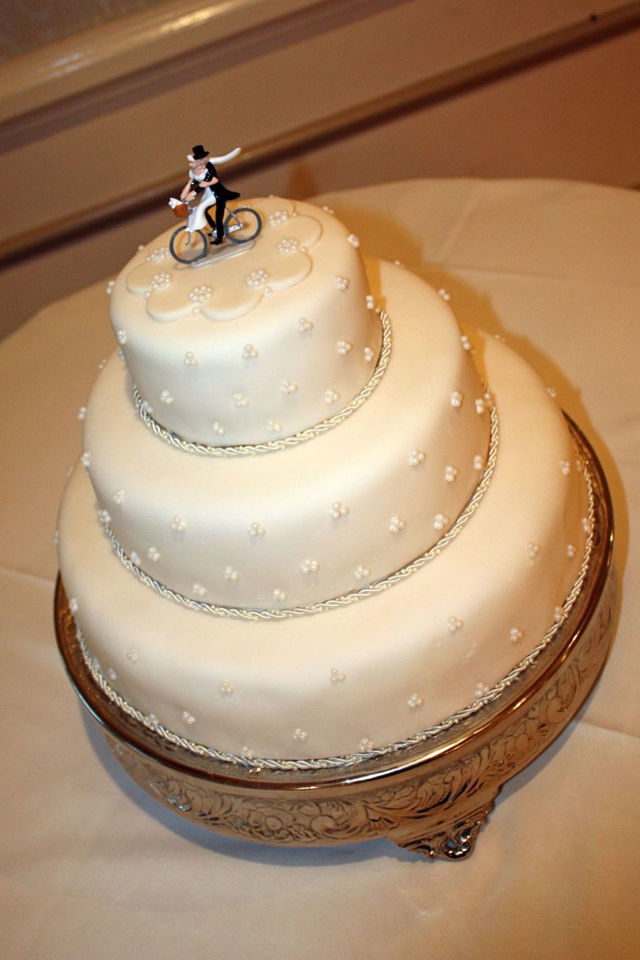 6", 10", and 14" round tiers covered in ivory fondant with edible pearls.