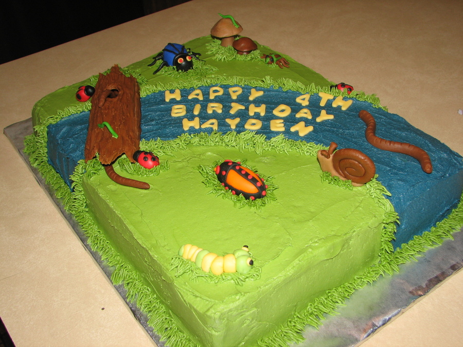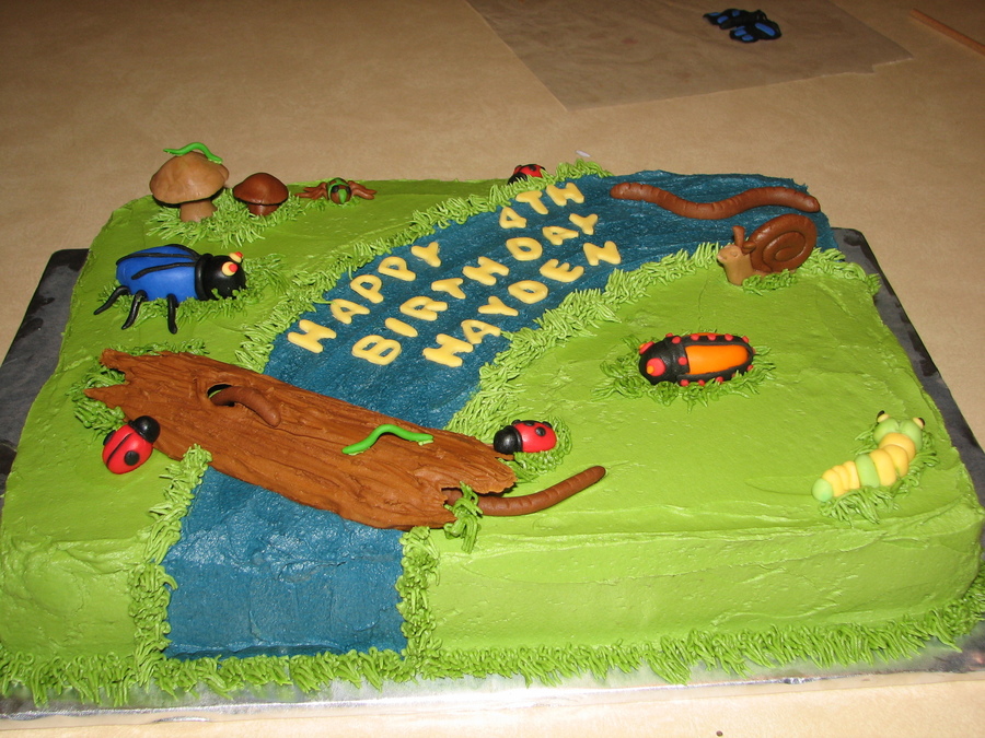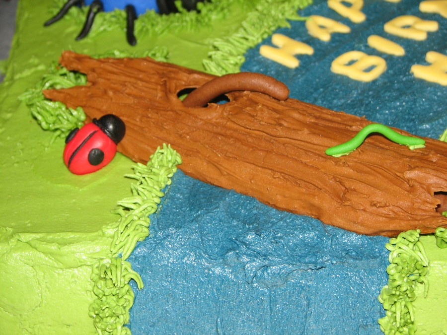 This is a cake I made for a friend whose son's 4th birthday was at Riverbend a nature and science place. The icing is buttercream, the log is royal icing and all the bugs are fondant. Thanks to all at CC for your great bug ideas!!