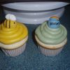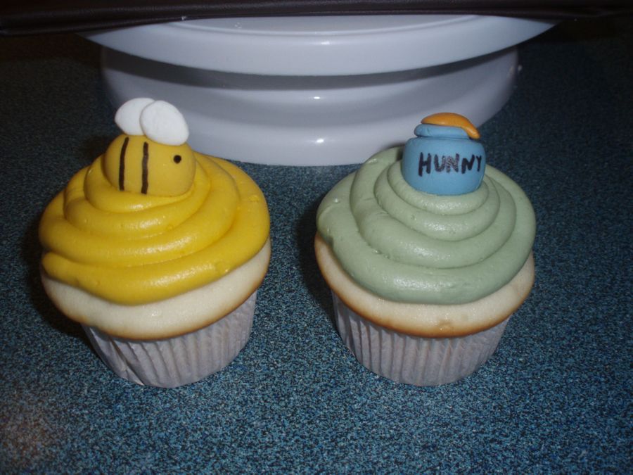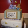 My first paid cake! Woo-hoo! This is a WASC with buttercream, covered in handmade MMF. Accents MMF/GP. Also made 2 dozen cupcakes, half bees and half were the hunny pots. Took forever, but it was fun! And more importantly, there was no cake-tastrophe! Whew. On a side note, I found some rubbermaid containers at Walmart that carry a dozen cupcakes perfectly, and leave enough space for lots of frosting/accents. Latches securely and stacks. They are called Handi-Box snap locks, just wanted to pass that along because I love them! TFL