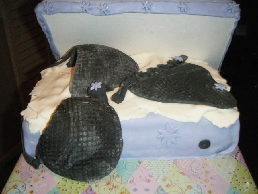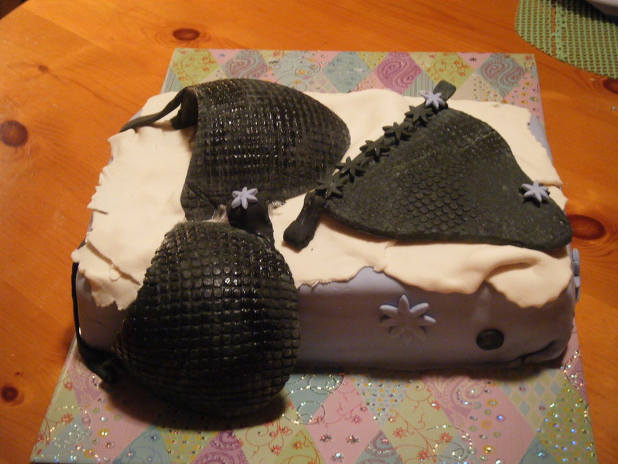 MMF covered cake for the box...MMF RKT for the cover...bra & panties in 50/50 mix (gumpaste/fondant). I definitely need practive with covering a square, corners are hard to get a crisp edge...Cake made for a bridal shower.