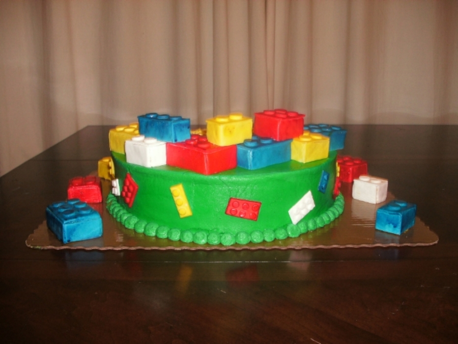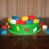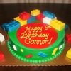 2 layer 12" rounds, covered in buttercream. Legos are RKT covered in fondant and airbrushed.