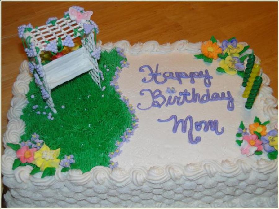 This is the first cake I've done in over a year. French Vanilla cake with utter cream frosting basket weave. The flowers and bench/trellis are royal icing.