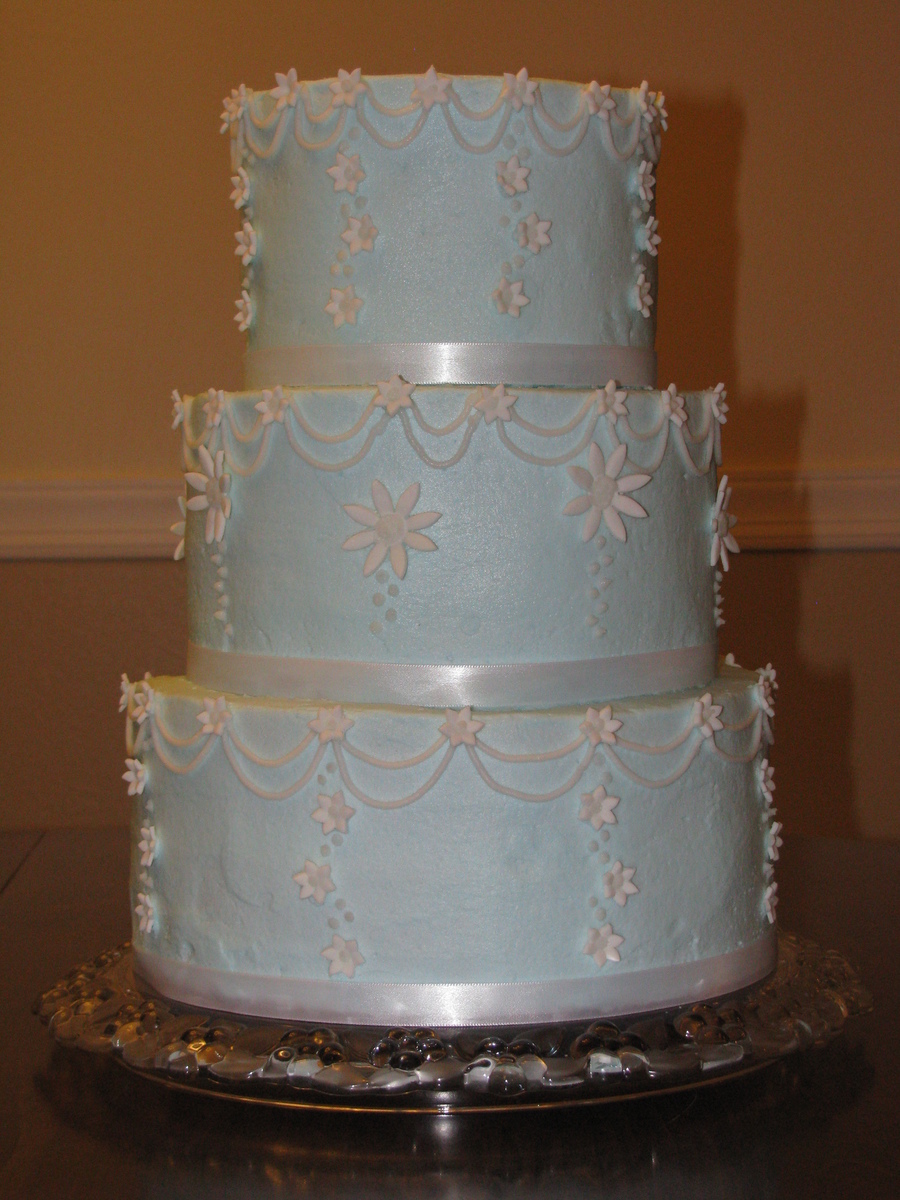 All buttercream except the ribbon. Drop strings are not as even as I wanted them to be. Modeled after a Mich Turner cake. Thanks for looking.