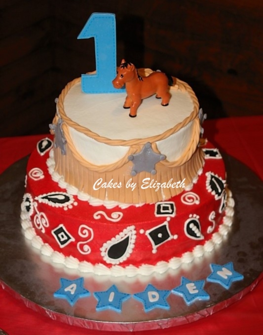 8 and 12 inch cakes with buttercream icing and fondant accents. Horse is plastic toy. I made this cake for my nephew's birthday party. Inspired by many wonderful cowboy cakes here in CC.