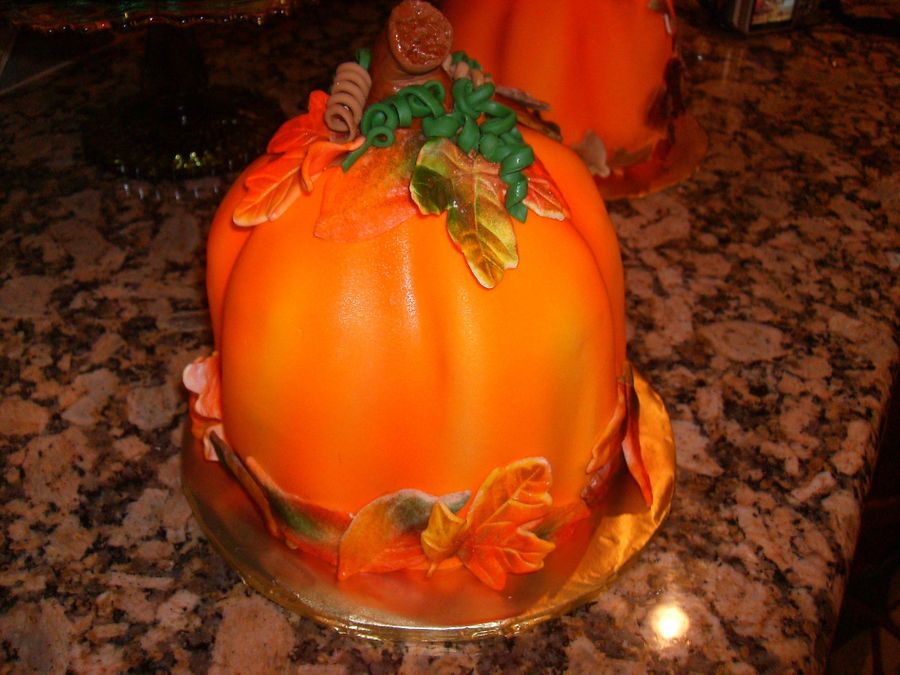 Airbrushed Pumpkin Cake. All Fondant. This is my 1st airbrushed cake. I was so hooked, I bought an airbrush kit 2 days later!